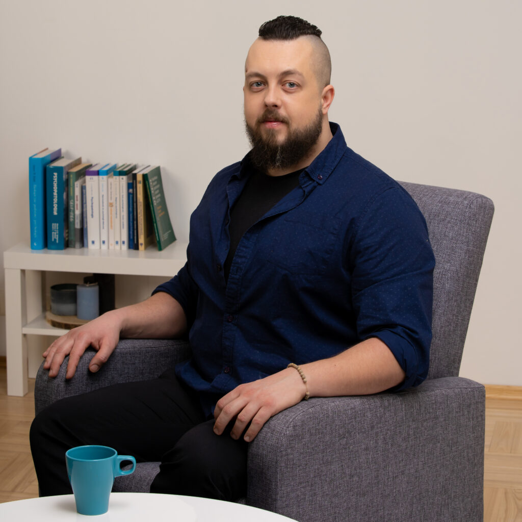 Jestem psychoterapeutą Gestalt, absolwentem Szkoły Gestalt w Warszawie. Pracuję w nurcie terapeutycznym, który kładzie nacisk na autentyczny kontakt, samoświadomość oraz poszukiwanie harmonii między myślami, emocjami i ciałem. W swojej pracy skupiam się na wspieraniu klientów w lepszym rozumieniu siebie, swoich relacji i mechanizmów, które kierują ich życiem.